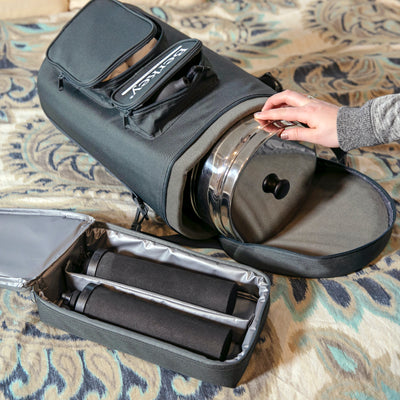 Disassemble and let the chambers, washers, wingnuts, and Black Berkey Filters dry out completely. If you think the filters are dry, wait a little longer and let them dry some more and then add an hour to that. Very important to have the filters be 100% dry if not going to be in use for a while. The Black Berkey Filters typically dry out completely in 3-5 days when set out on a towel. Purging the filters with a Black Berkey Primer dries out the filters faster. Once everything is dry, dry, dry, package the Berkey up in a safe container to be put away. We like using the original packaging or a Berkey tote. The chambers nest inside each other to make a smaller footprint for easier storage. If you're traveling with your Berkey, take care to protect the stems of your Black Berkey Filters so that they don't break. Store the filters in a temperature controlled (don't let the filters freeze or get too hot), dry place away from strong odors or fragrances. The carbon material of the filters can sometimes absorb the smells and then make your water taste weird. Whenever you're ready to start using your Berkey again, prime the filters, reassemble, and re-enjoy the great benefits of Berkey water.